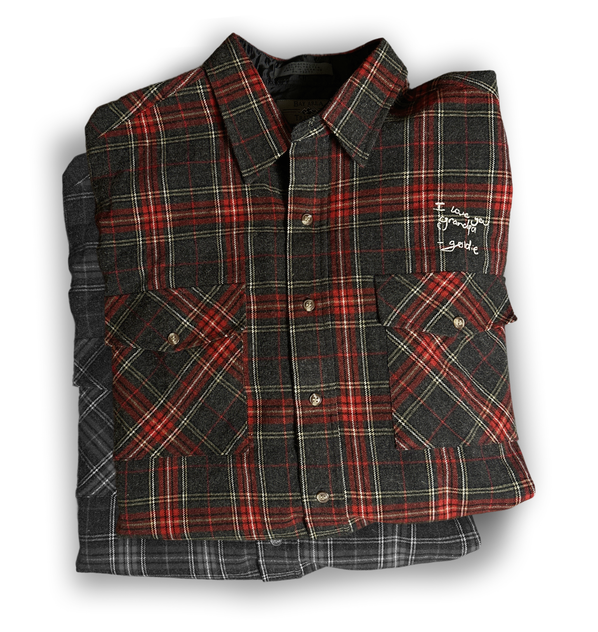 Perfect grandparent gift! Upload your handwriting or a child's handwritten "I love you". Get two vintage flannels ready to win Christmas.