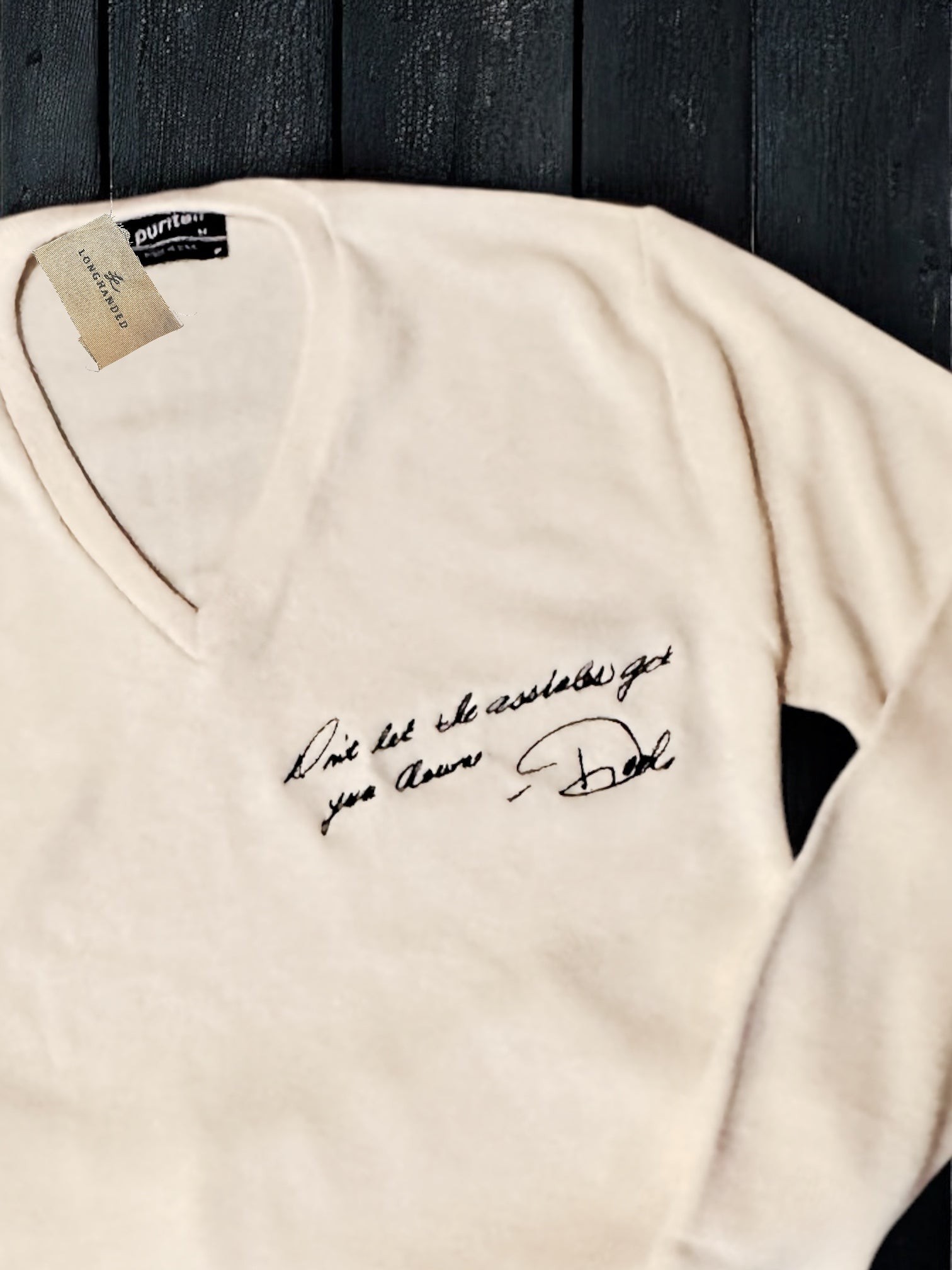 Add a handwritten note, message, or letter to a single vintage or preowned scarf in our Thrift Store catalog