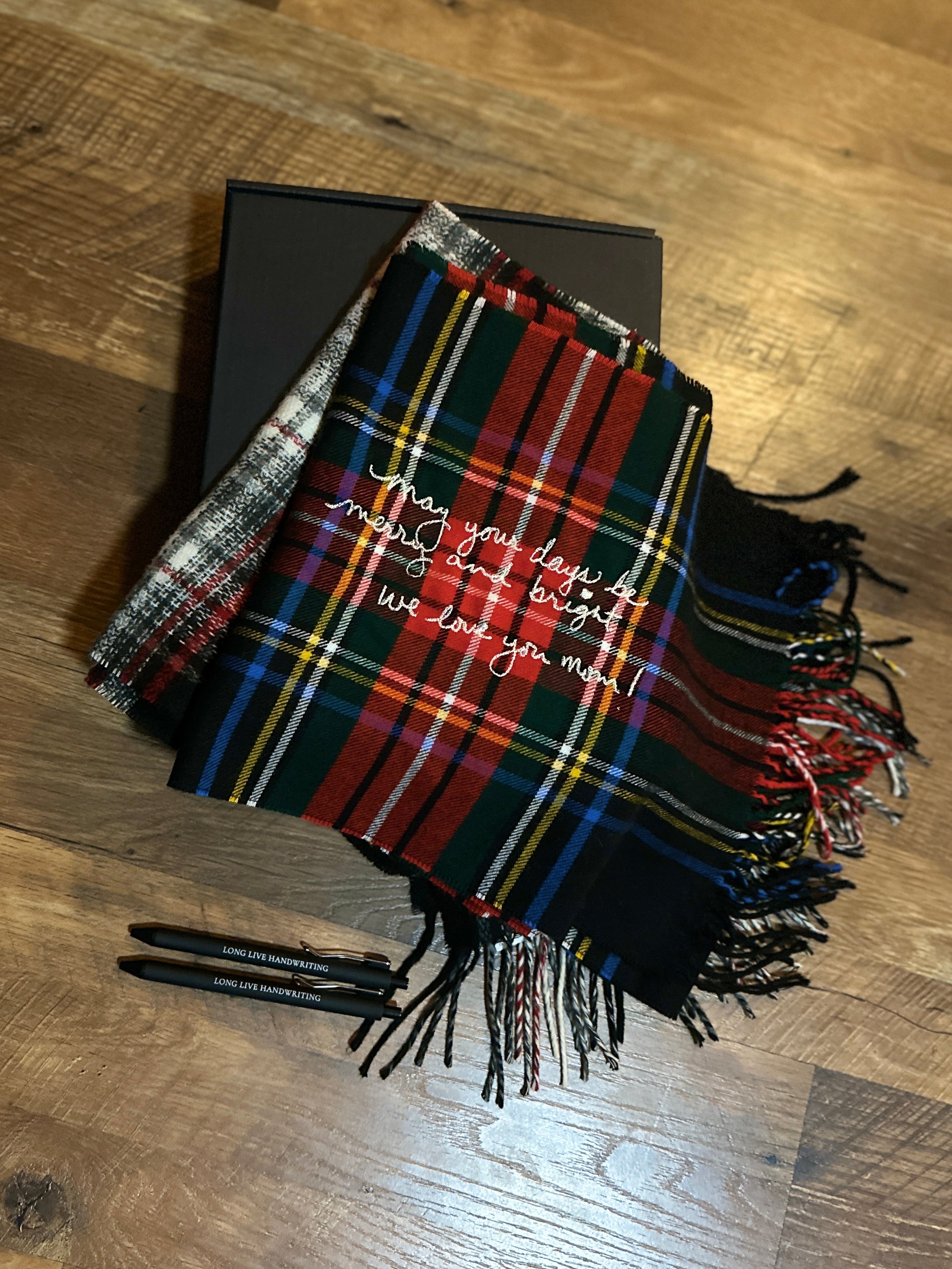 Embroidered on large 28" X 28" lint-free, 100% cotton muslin towels. No bulky backing, each of our handwritten recipe towels are a functional artifact made to use or display right out of the box.