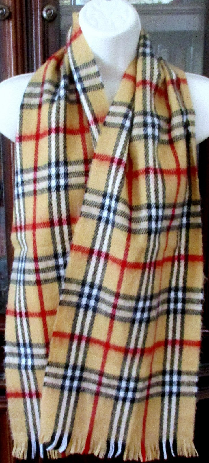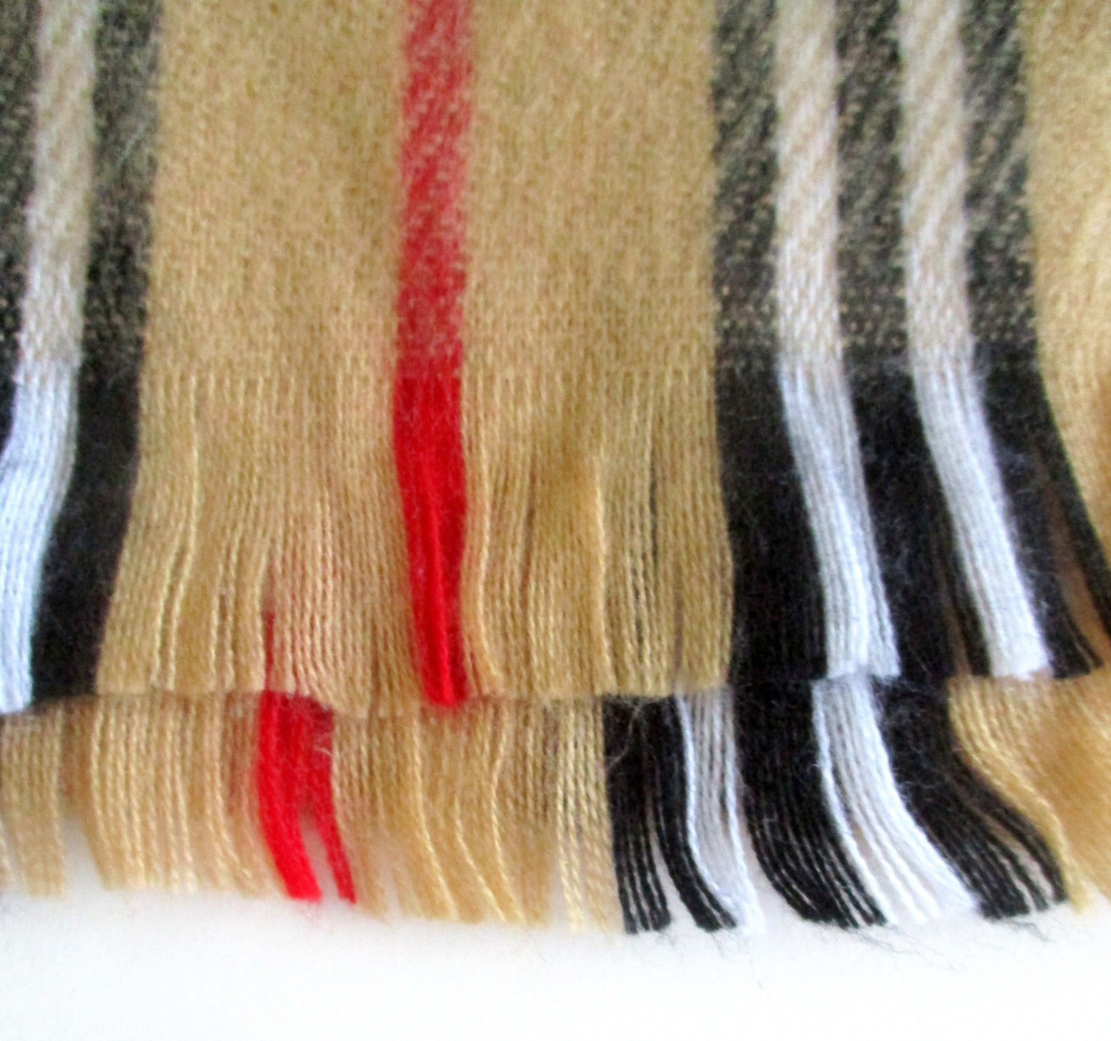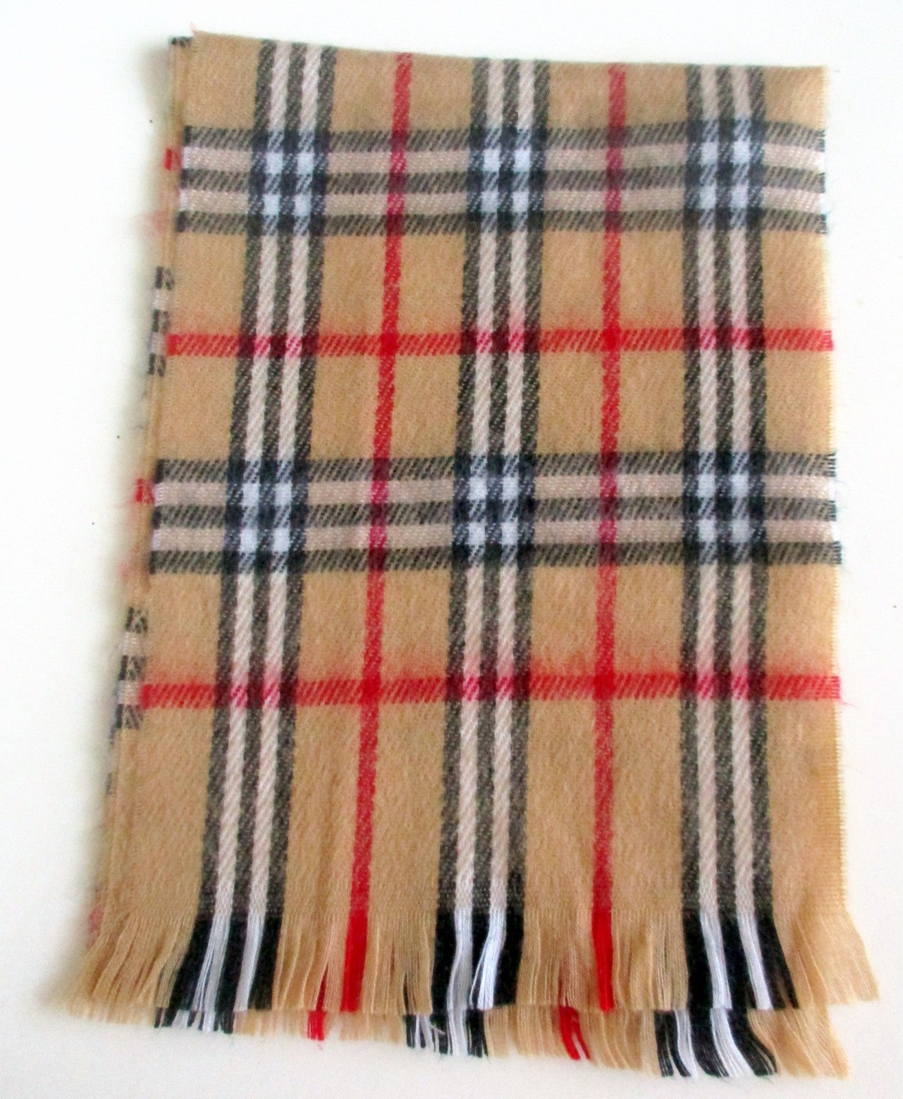 Vintage Tan Plaid Scarf with Fringe