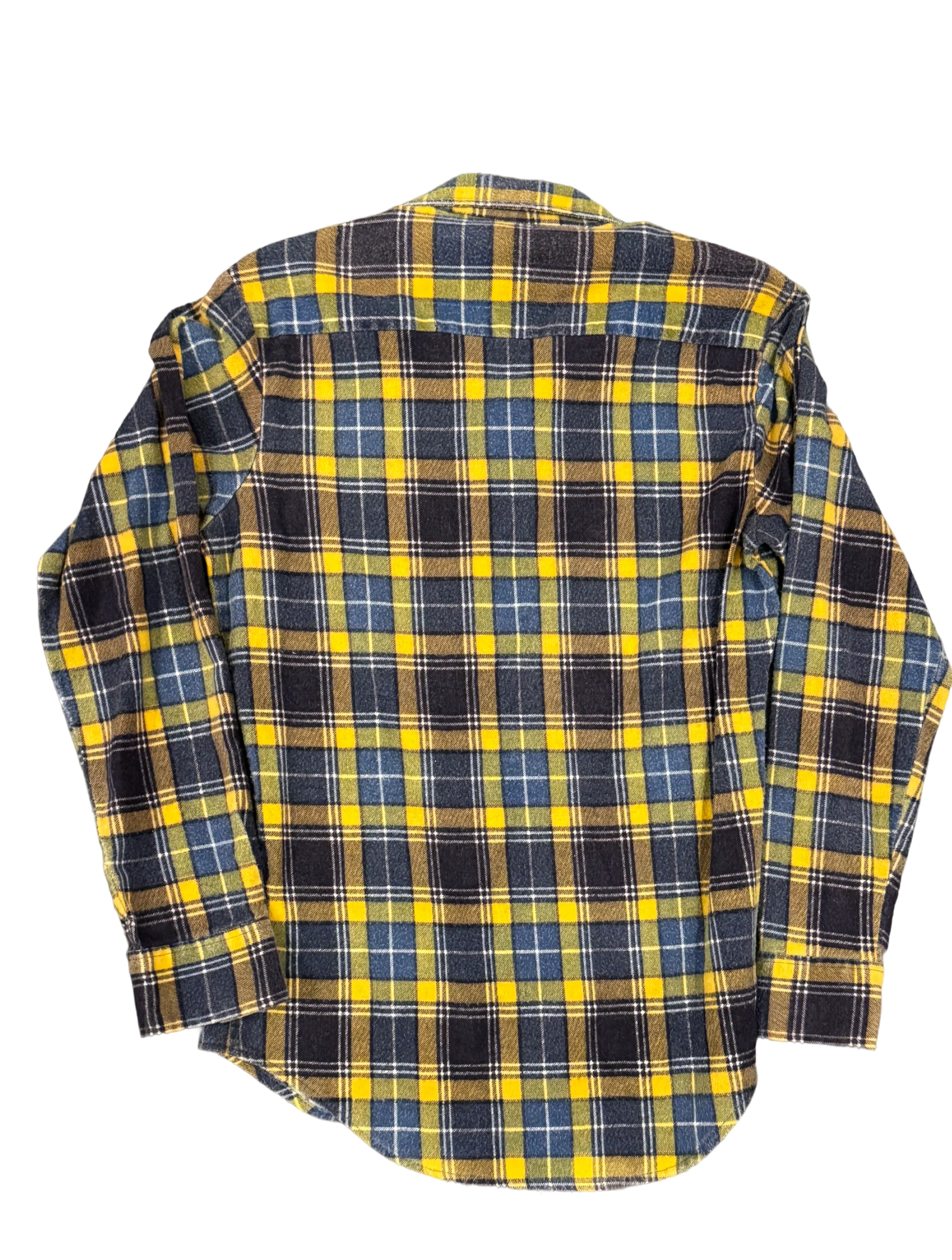 Vintage Gem Yellow & Blue Plaid Flannel with a Western vibe. This was likely made in the 1970s for kids however, it fits a women's size small. Worn just enough to make it look intentional, perfect to front chest writing opposite the pocket. There's something about the collar that makes this one a true vintage gem.