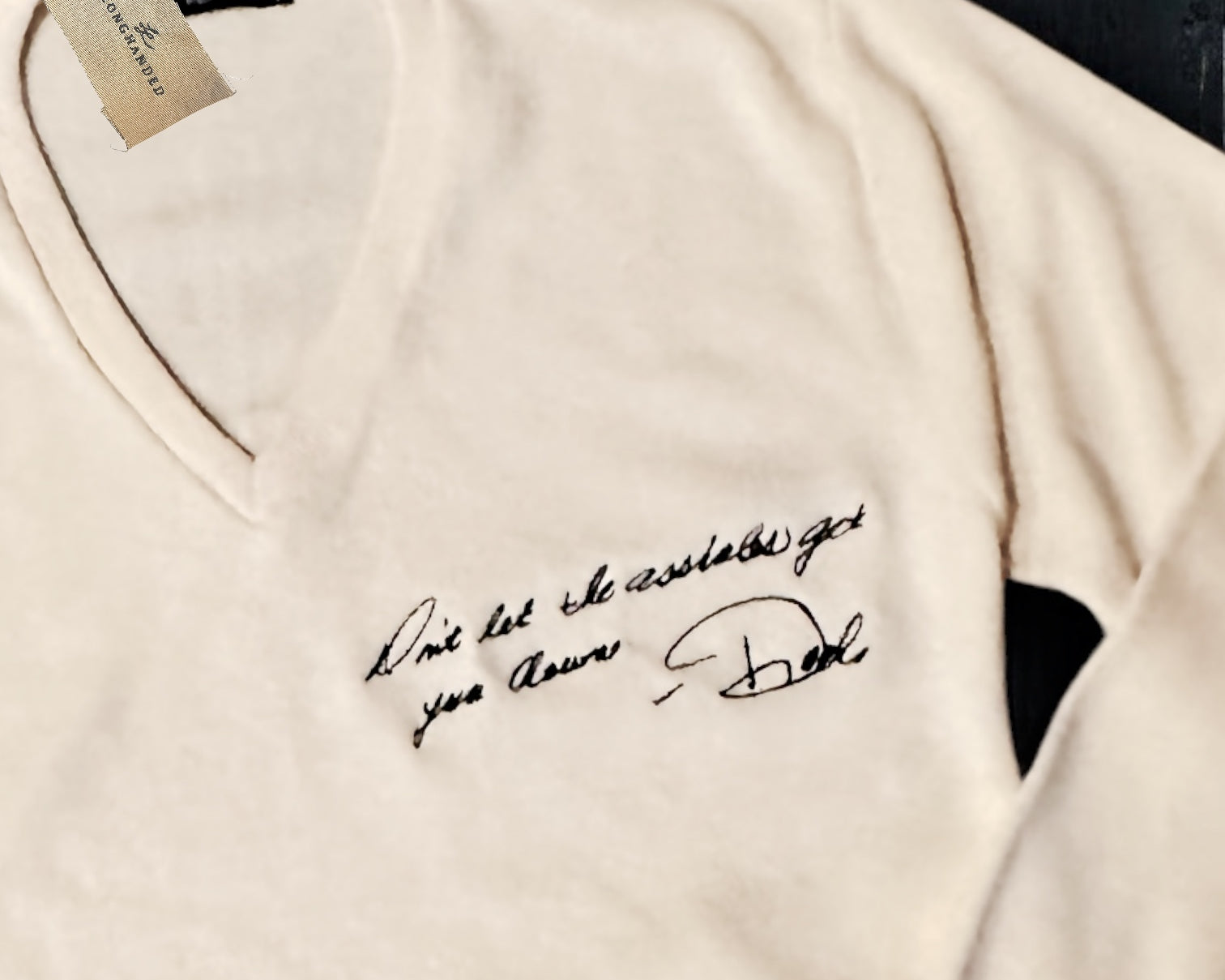 Add a handwritten note, message, or letter to a single vintage or preowned scarf in our Thrift Store catalog