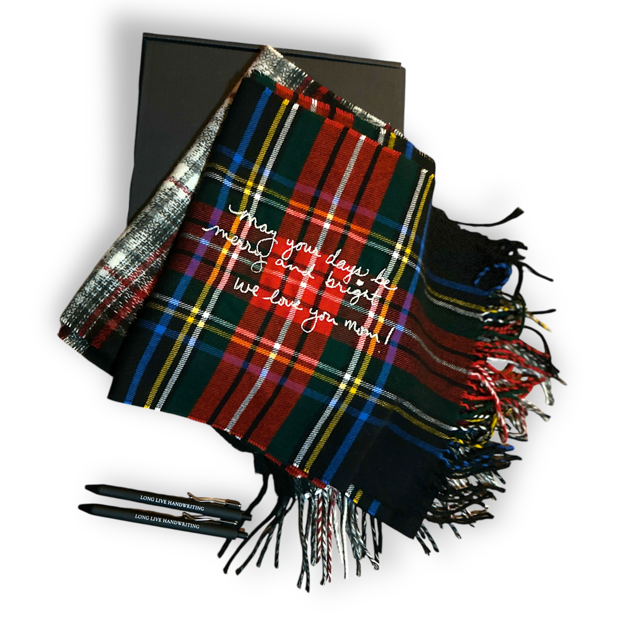 Perfect grandparent gift! Upload your handwriting or a child's handwritten "I love you". Get two vintage flannels ready to win Christmas.